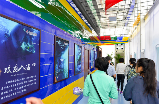 中國館展區面積3500平方米,由中國極地研究中心、國家深海基地管理中心、中國船舶重工集團、中國航天科技集團等22家權威機構和知名企業攜海洋科技、航天科技成果集體亮相。展會現場,觀眾通過國內首次亮相的“蛟龍號”模擬操控系統,真切體驗到“蛟龍號”水下作業的場景;天宮二號1:1模型體驗倉前排起長隊,觀眾可身臨其境感受太空的魅力;而在5D影院,我國首部深海立體電影《蛟龍入海》,展示了奇幻的海底世界和當前深海探測前沿成果。此外,極地科考VR體驗、大洋科考模擬體驗、船舶模擬駕駛、水下機器人演示等現場互動項目,也激發了現場觀眾的極大興趣。