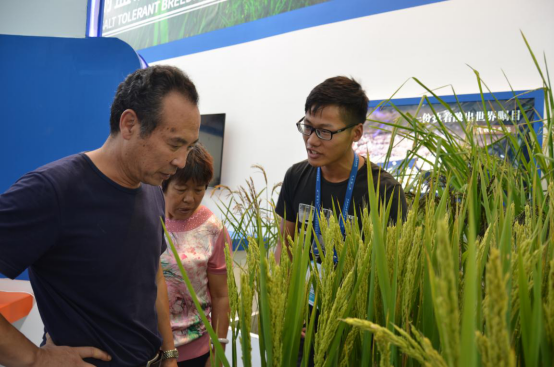 以“藍色脈動”為主題的山東·青島館集中展示了山東及青島推進新舊動能轉換、實施海洋科技自主創新的新成果,以及青島西海岸新區實施海洋戰略、率先藍色跨越的新亮點。哈工程、北船重工、海西重機、華大基因、三泰集團等駐青高校、企業集中亮相,主要展出海工裝備、船舶制造、海洋生物、海洋醫藥、基因工程、海水淡化等藍色科技創新發展技術,凸顯藍色經濟發展的無限潛力。在青島海水稻研究發展中心展區,負責人杜德樂正在介紹“海水稻”:“我們此次參展的水稻種質共有30份,包括優質品系、有色品系、耐鹽堿品系和多倍體品系四大類。其中耐鹽堿品系主要是針對鹽堿灘涂培育的耐性品種,俗稱‘海水稻’。相比普通水稻,可在鹽堿化的土壤環境中生長,這是袁隆平院士牽頭參與的課題。”歌爾科技VR體驗區排起了長隊,不時傳來體驗者的陣陣歡呼。